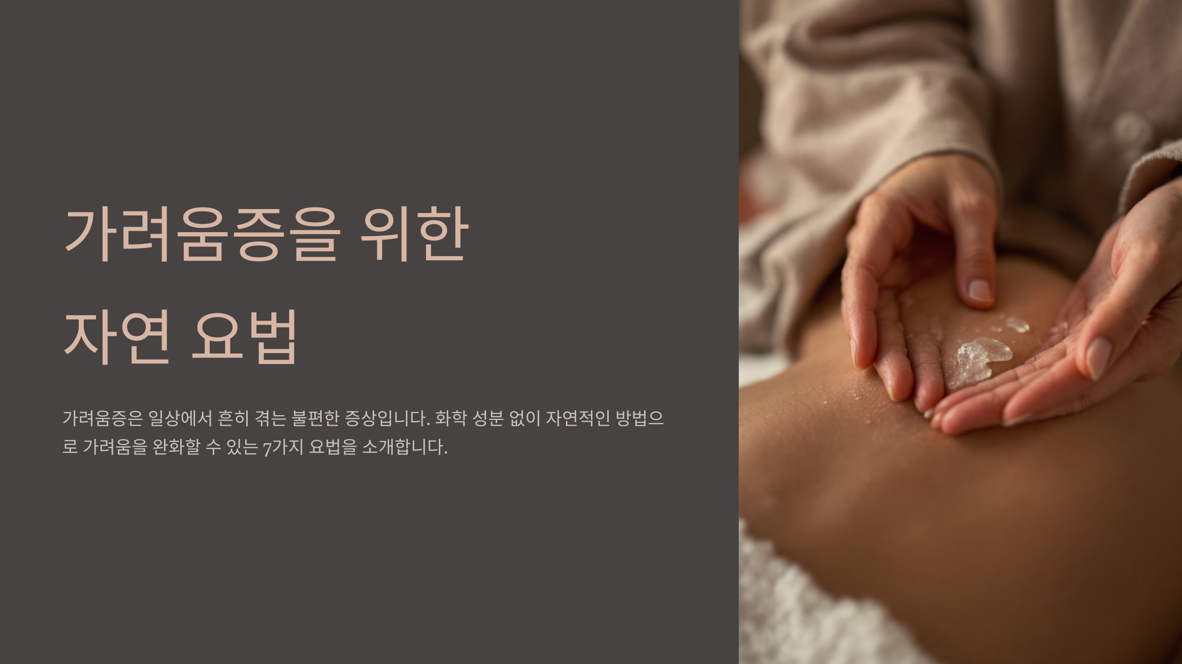 가려움증은 많은 사람들이 일상에서 겪는 불편한 증상 중 하나입니다. 특정 피부 질환이나 알레르기, 건조한 피부 등 다양한 원인으로 발생하는 가려움증은 긁으면 더 악화될 수 있어 조심스러운 관리가 필요합니다. 그렇다면 화학 성분 없이, 자연적인 방법으로 가려움을 완화할 수 있는 요법에는 어떤 것들이 있을까요? 오늘은 피부에 자극을 주지 않으면서 가려움을 완화할 수 있는 자연 요법을 소개해드리겠습니다.