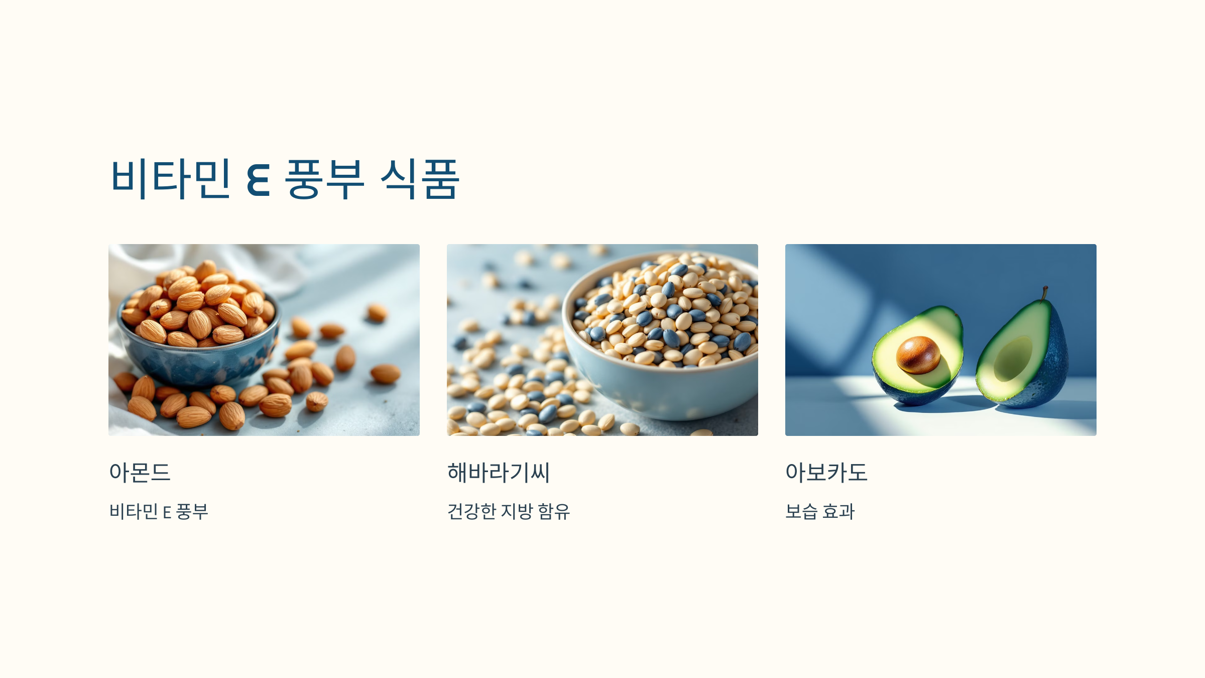 - 섭취 방법: 견과류, 씨앗류, 식물성 기름, 녹색 잎채소
