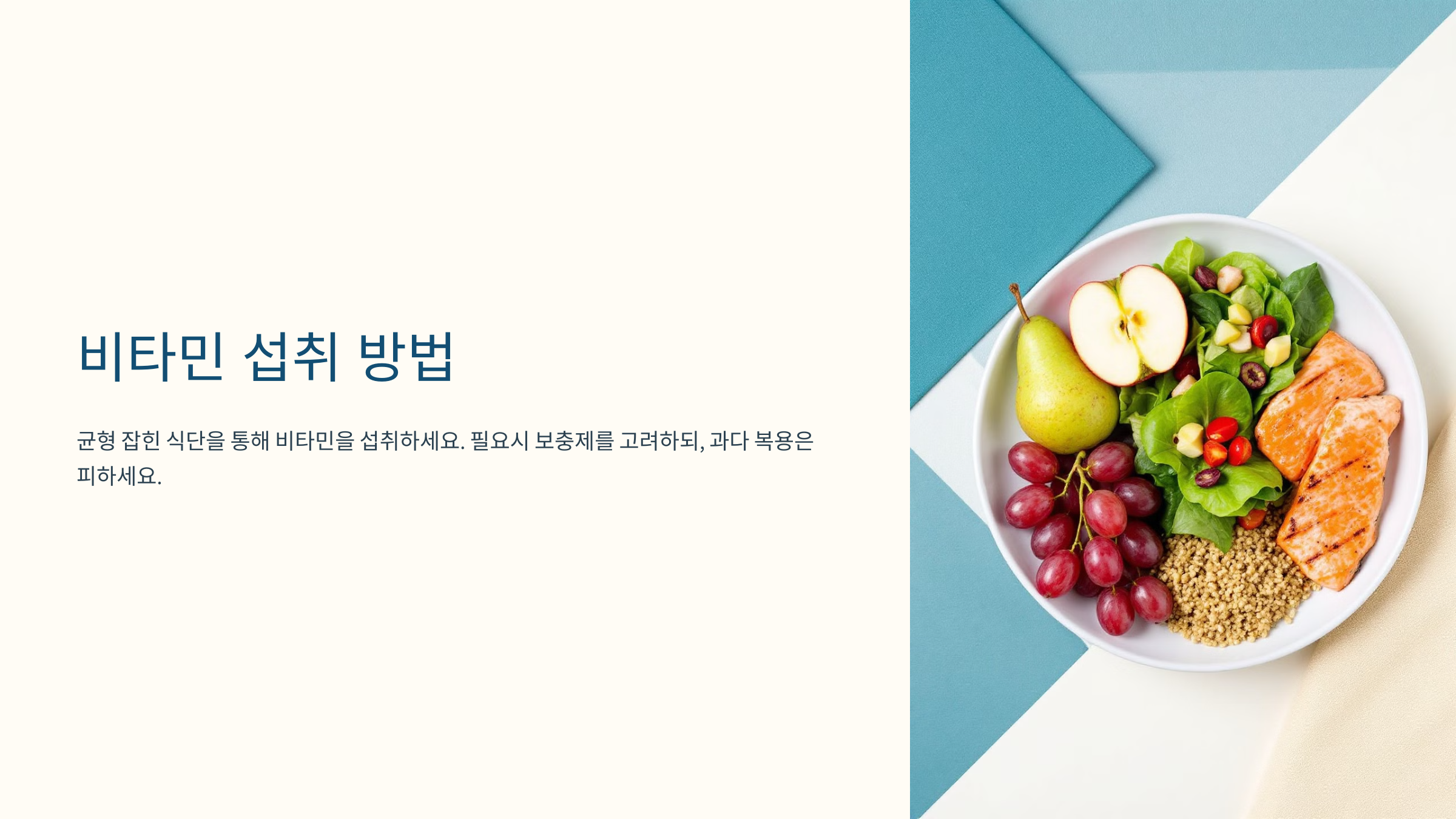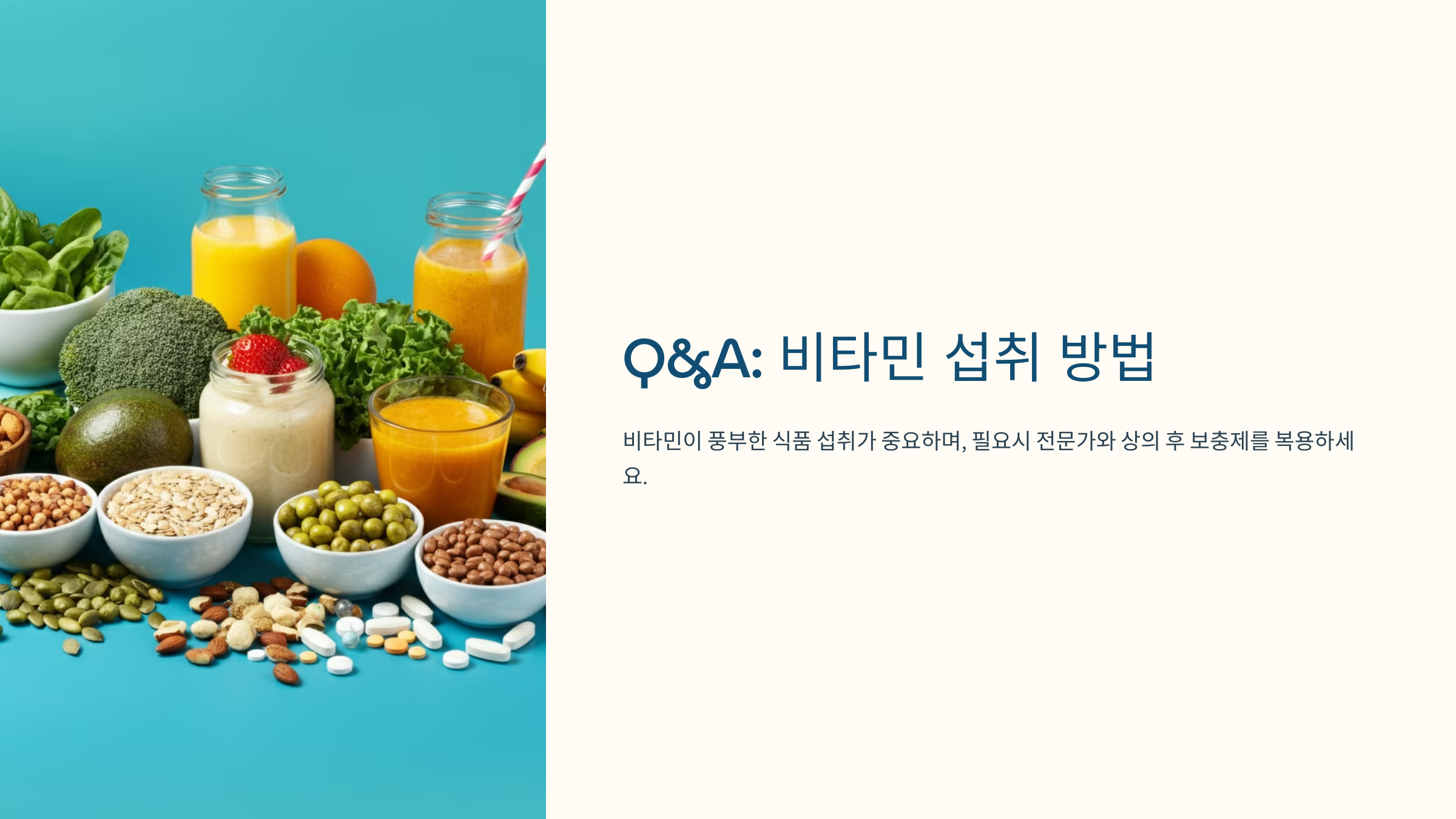 - 가능한 식품을 통해 비타민을 섭취하되, 필요 시 보충제로 보완