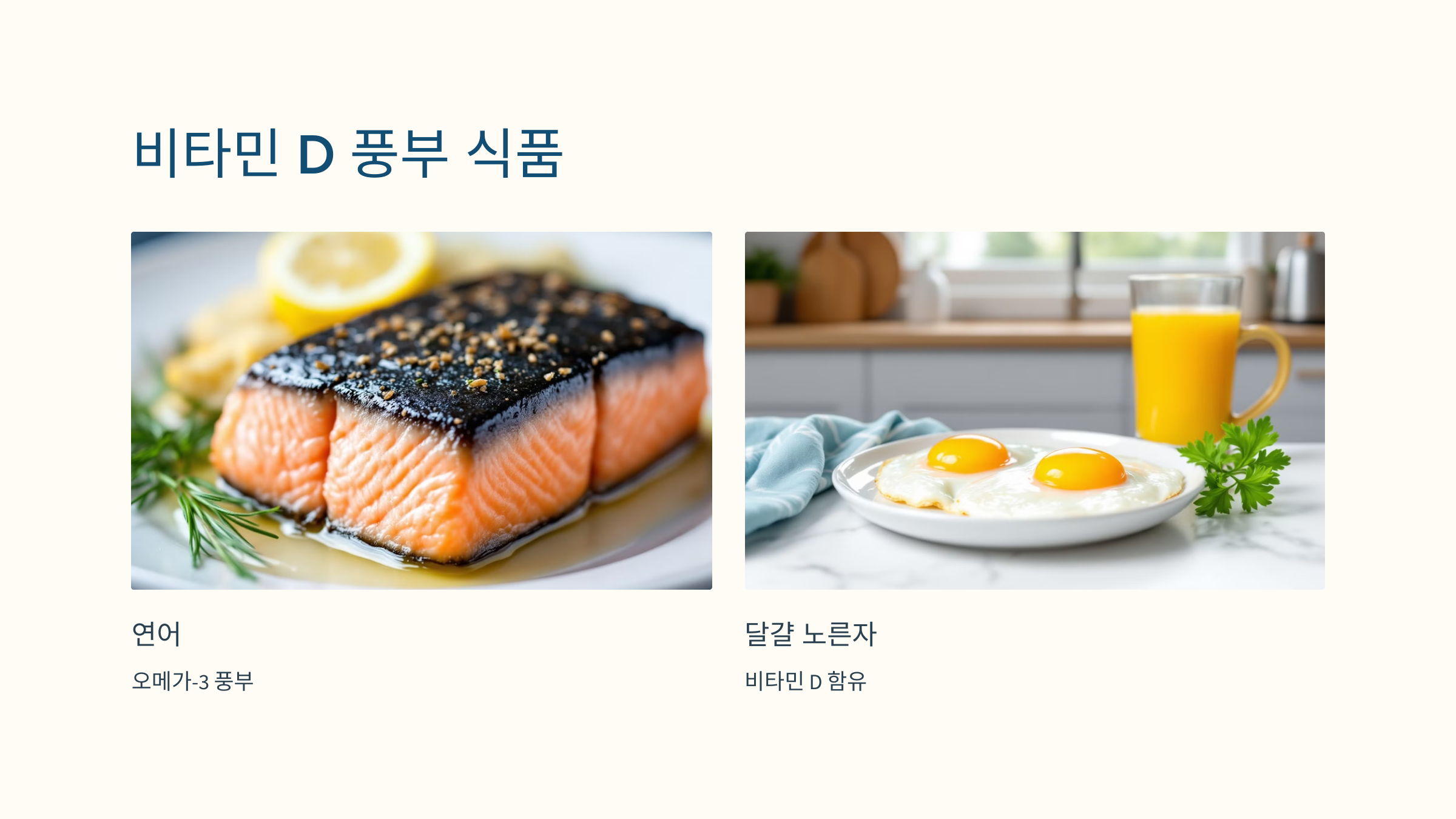 - 주요 공급원: 햇빛 노출, 생선 기름, 달걀 노른자, 강화 유제품