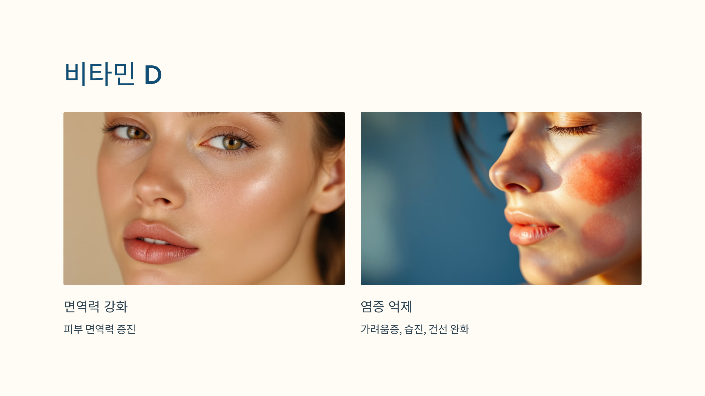 비타민 D는 피부 건강에 중요한 역할을 합니다. 이 비타민은 피부 장벽 기능을 강화하고 염증을 감소시키는 데 도움을 줍니다.