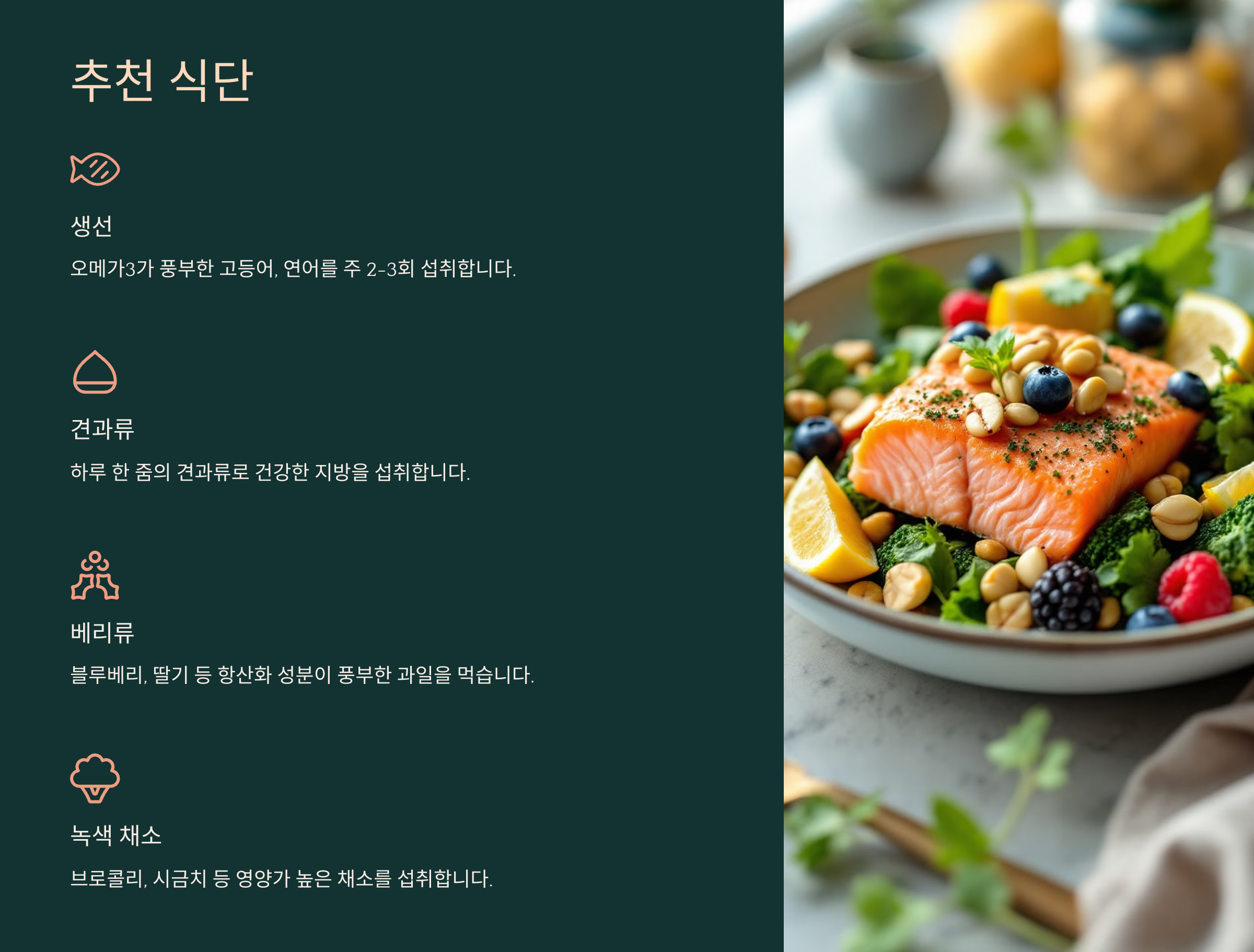 - 고등어, 연어 (주 2-3회 추천!)
