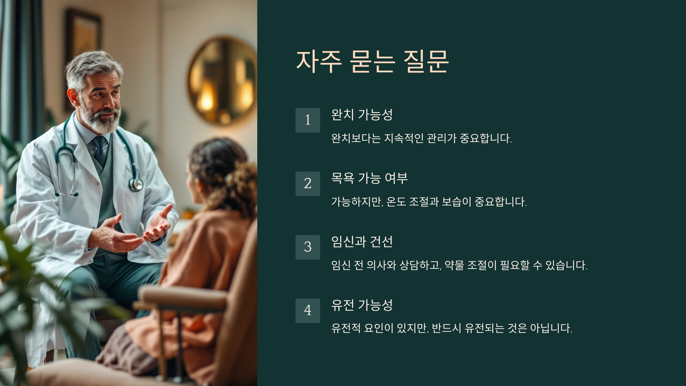 솔직하게 말씀드릴게요. 완치보다는 '관리'예요.