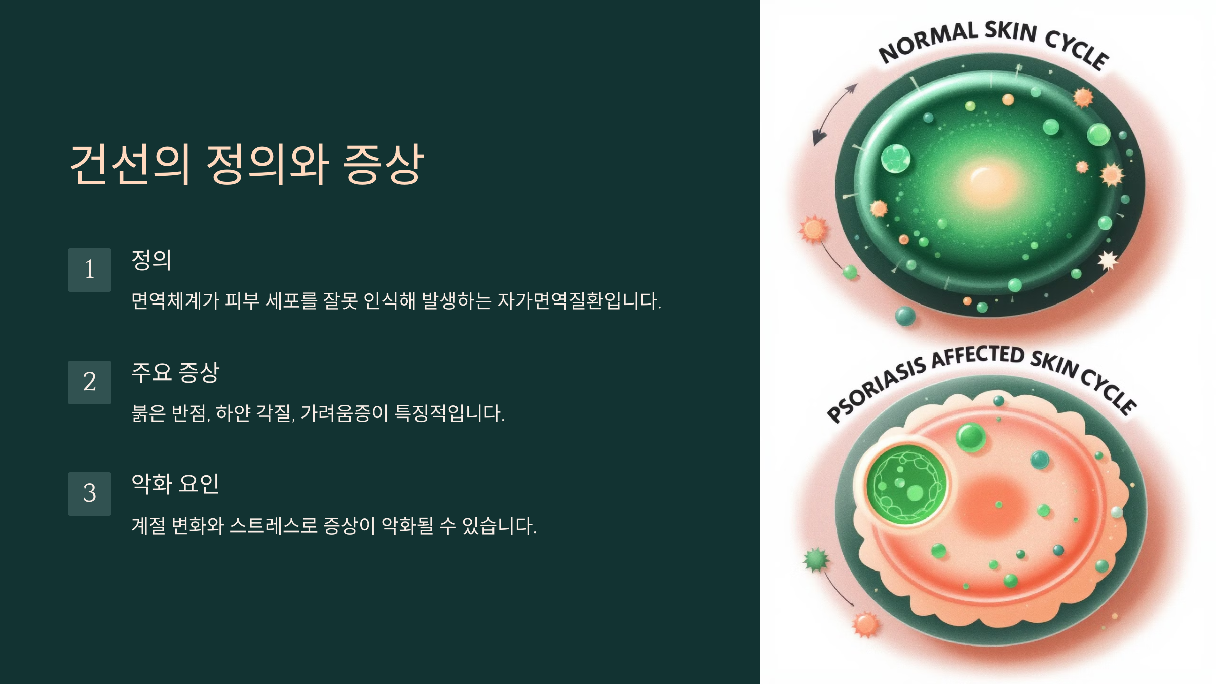 - 하지만 건선이 있으면 이 과정이 3-4일로 엄청 빨라져요