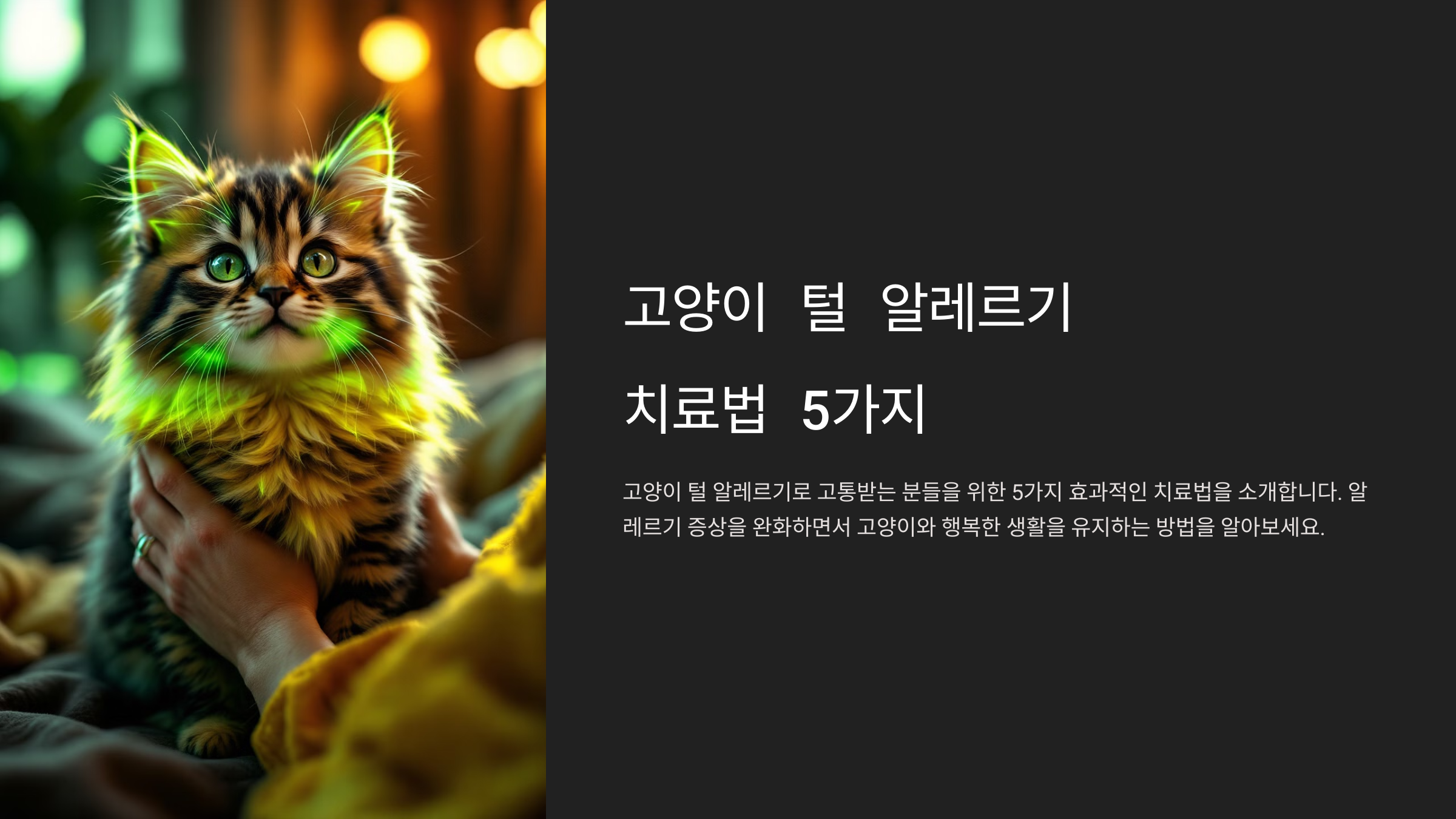 고양이와 함께 생활하는 많은 사람들이 고양이 털 알레르기로 어려움을 겪고 있습니다. 가려움증, 재채기, 콧물 같은 알레르기 증상이 나타나면 사랑하는 고양이와의 생활이 쉽지 않겠죠. 그러나 다행히도, 고양이 털 알레르기를 효과적으로 관리할 수 있는 방법이 있습니다. 이번 포스팅에서는 고양이 털 알레르기를 완화할 수 있는 5가지 방법을 소개합니다. 고양이와 알레르기 걱정 없이 함께 지낼 수 있는 방법을 알아보세요.
