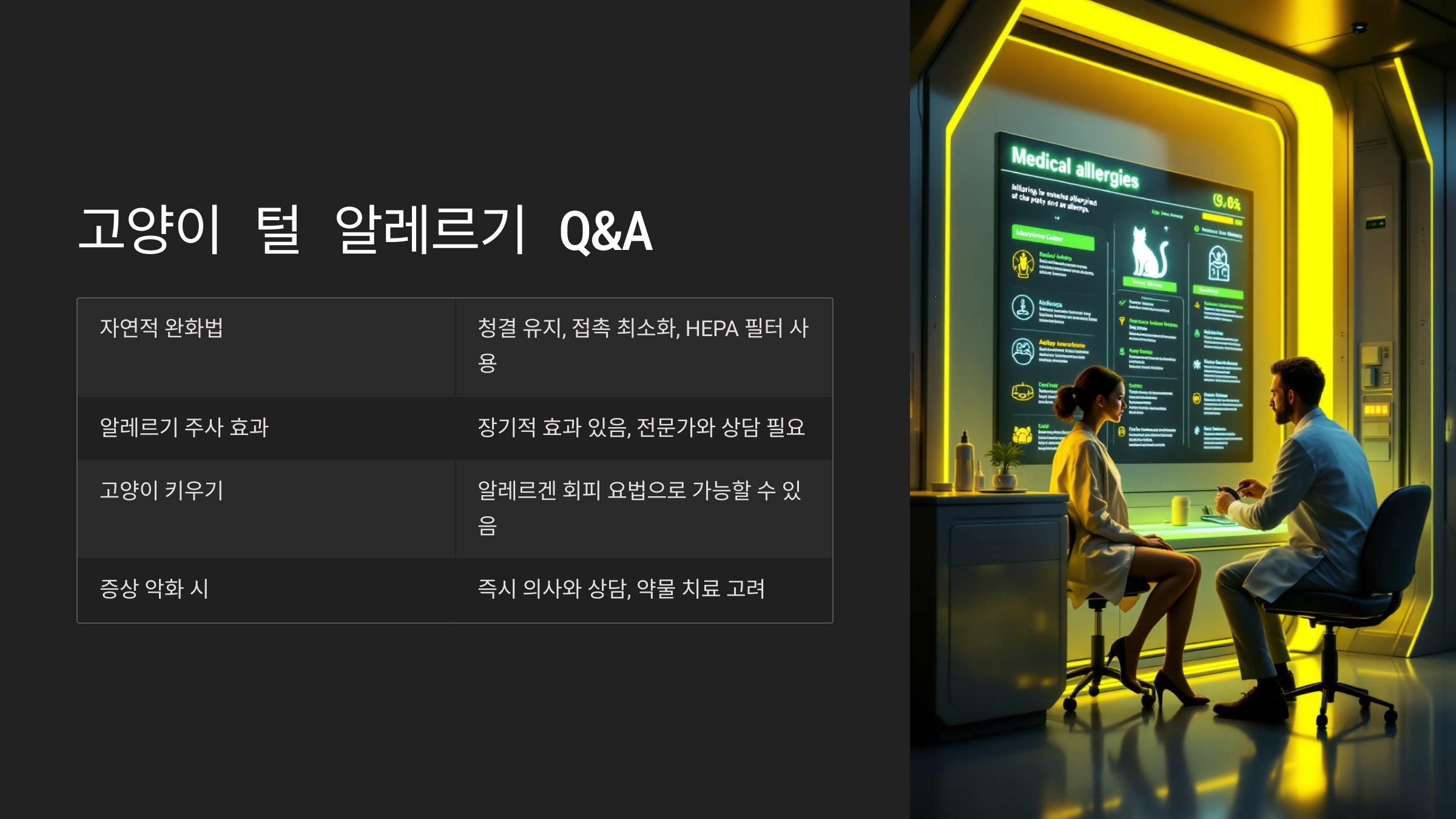 Q3. 고양이 털 알레르기가 심해지면 어떻게 해야 하나요?