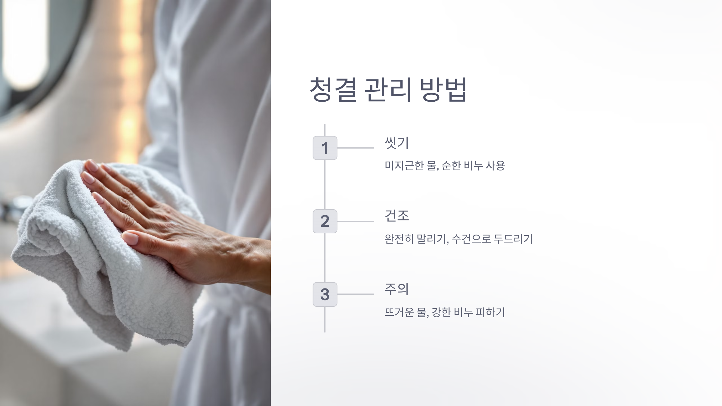 첫째도 청결, 둘째도 청결이에요! 하지만 너무 뜨거운 물이나 강한 비누는 피부를 더 예민하게 만들 수 있으니 주의해주세요.