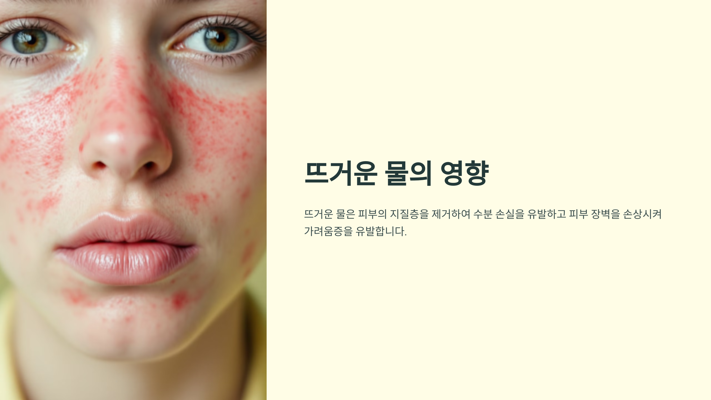 A2. 뜨거운 물은 피부의 지질층을 제거하여 수분 손실을 유발하고, 피부 장벽을 손상시켜 가려움증을 일으킬 수 있습니다.