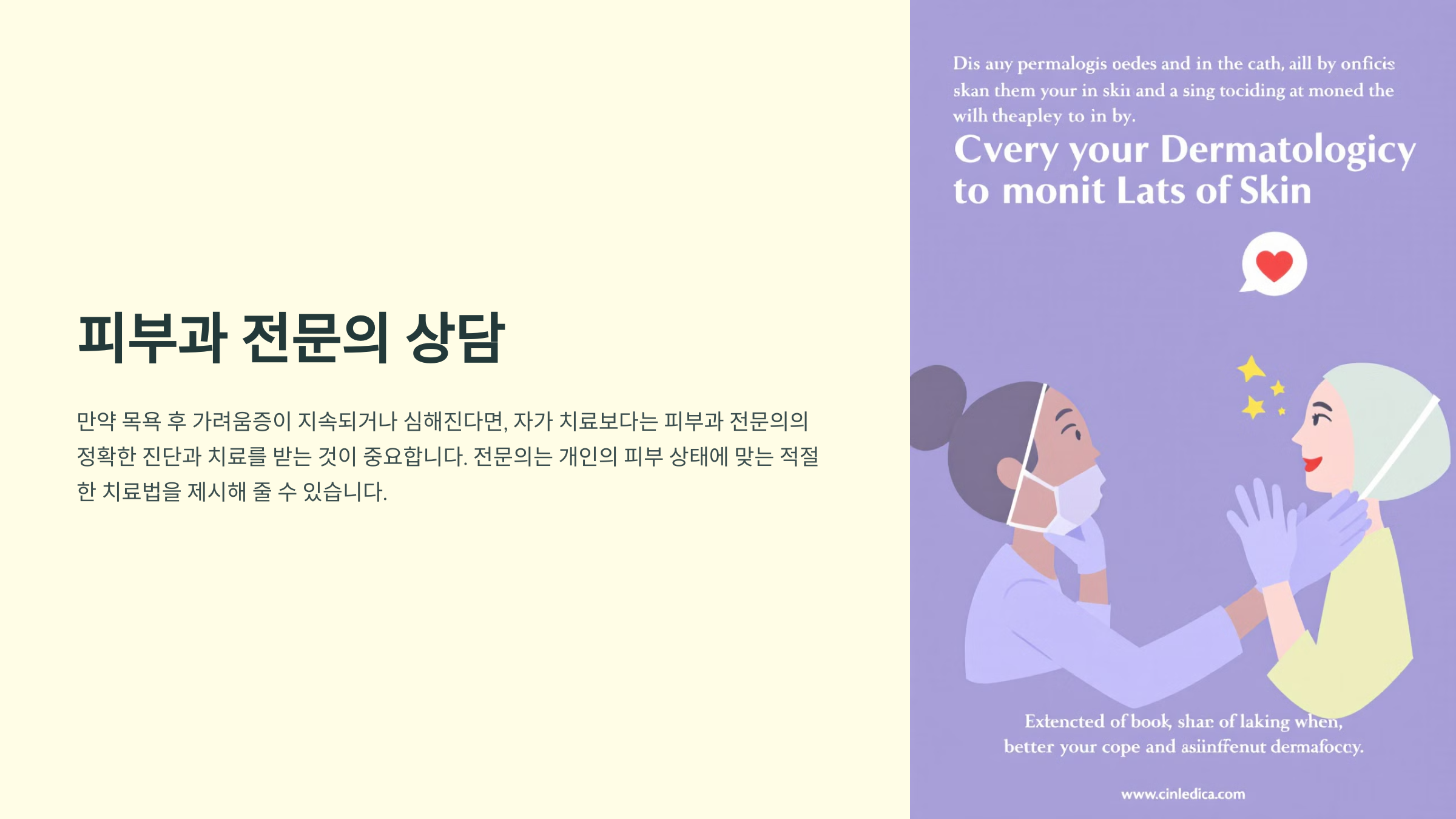 목욕 후 피부가 가려운 경험을 한 적이 있나요? 이는 많은 사람들이 겪는 흔한 증상입니다. 특히 피부가 건조하거나 민감한 사람들에게 자주 발생하며, 피부가 긁힐 정도로 심한 가려움증을 유발할 수 있습니다. 목욕 후 가려움증은 단순한 불편함을 넘어서 피부 건강에도 영향을 미칠 수 있기 때문에 적절한 관리와 예방이 필요합니다.