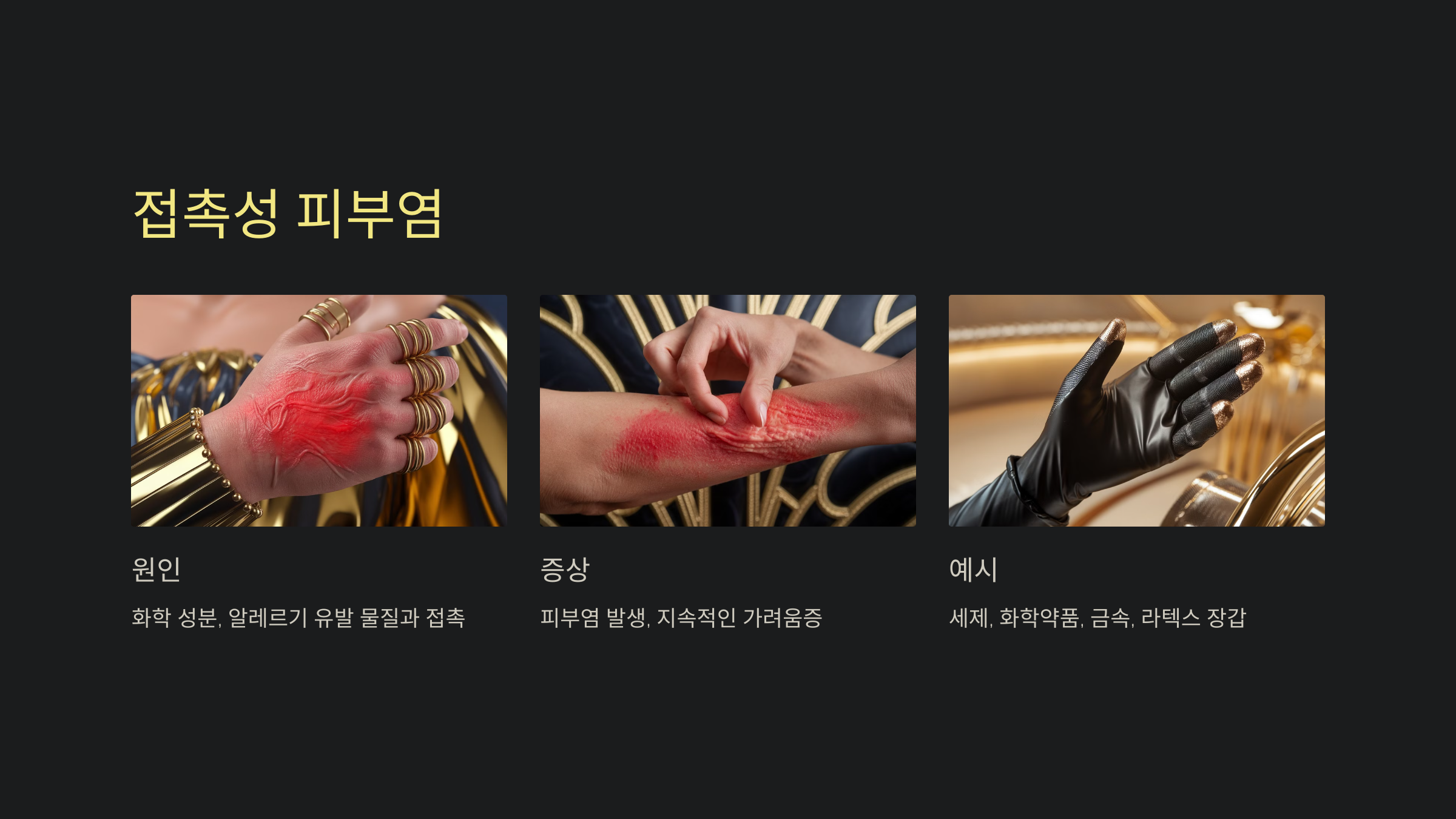 알레르기를 유발할 수 있는 화학 성분이나 자극적인 물질을 피하는 것이 좋습니다. 자극이 덜한 저자극성 비누와 세정제를 사용하는 것이 도움이 되며, 화학약품을 사용할 때는 장갑을 착용하여 피부 접촉을 최소화합니다.