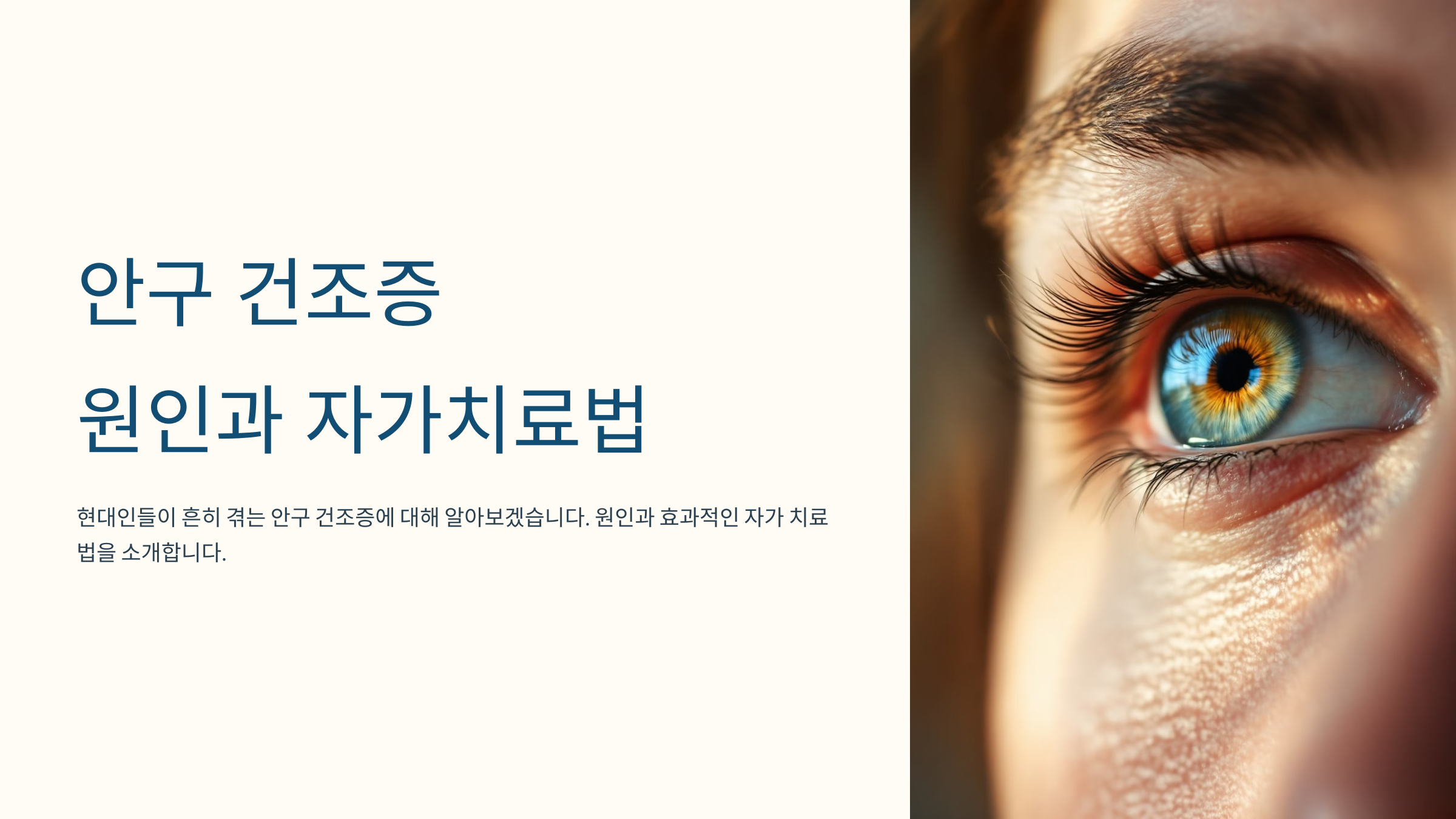 안녕하세요, 여러분 😊 오늘은 안구 건조증에 대해 알아보려고 해요. 현대인이라면 누구나 한 번쯤 겪어봤을 문제죠? 스마트폰, 컴퓨터를 많이 사용하다 보면 눈이 따끔따끔해지고 건조해지는 걸 느낄 수 있어요. 그래서 이번 포스팅에서는 안구 건조증의 원인과 자가 치료법에 대해 쉽게 설명해드릴게요!