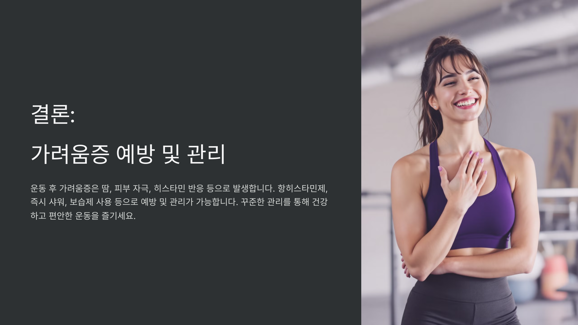 Q3. 운동 후 가려움증을 예방하려면 어떻게 해야 하나요?