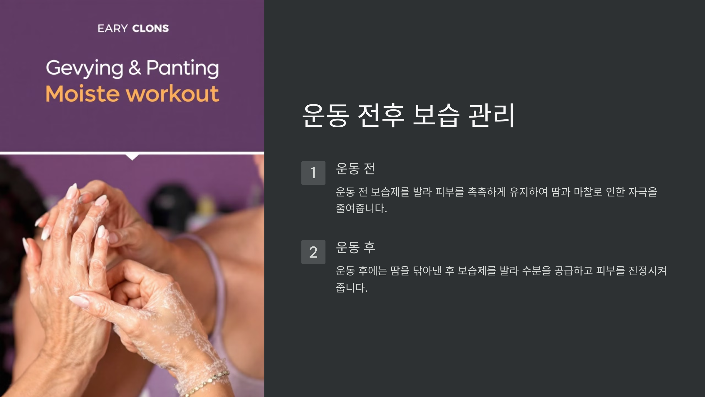 2) 운동 전후 피부 보습 관리