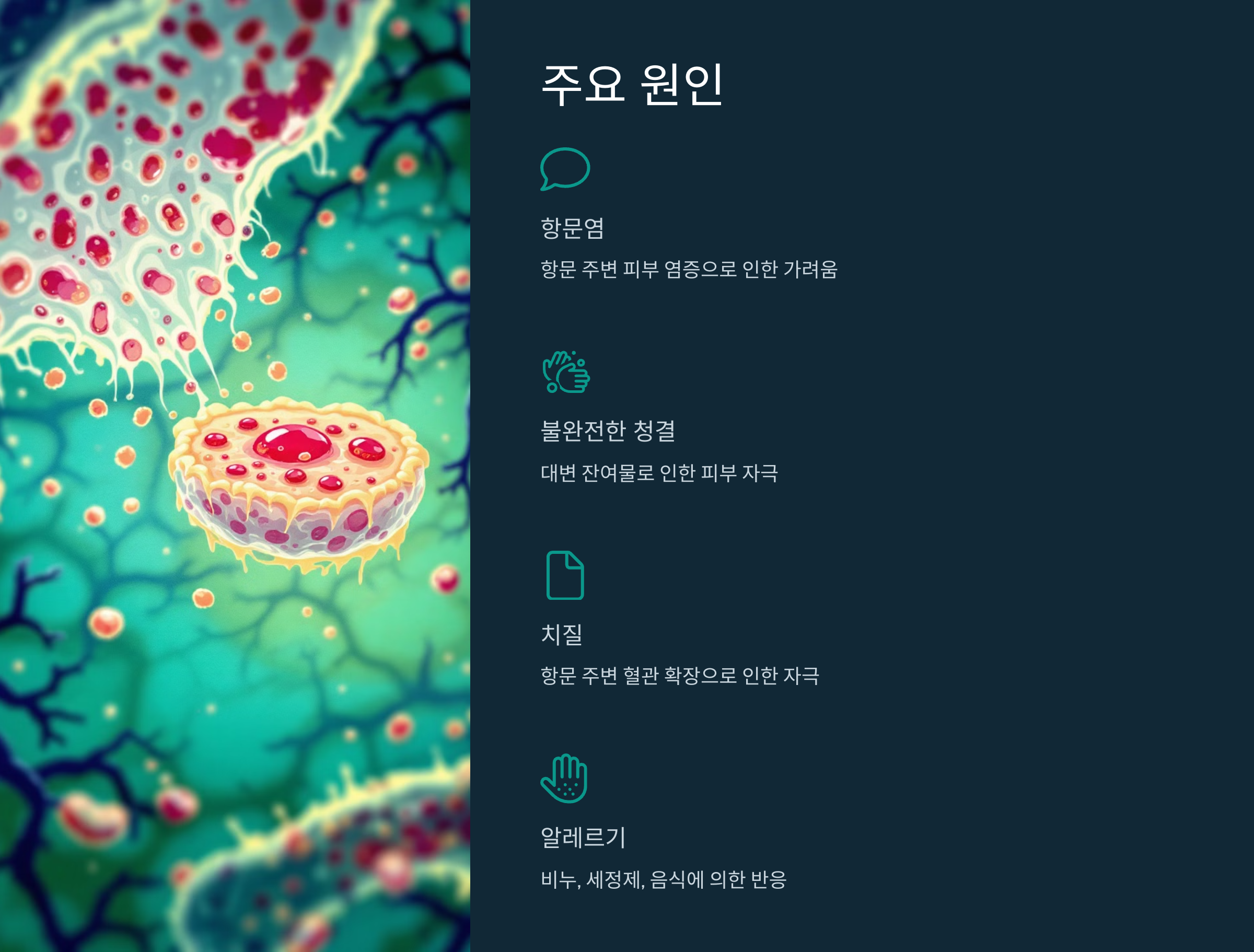 항문 가려움증을 유발할 수 있는 대표적인 원인은 다음과 같습니다: